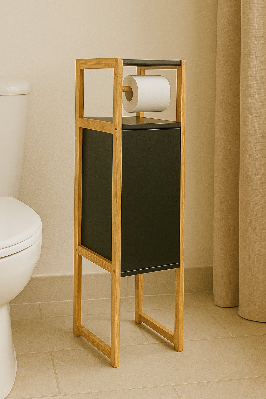 Suport hartie igienica 5Five Natureo cu dulapior, MDF, 33x20x80 cm, negru