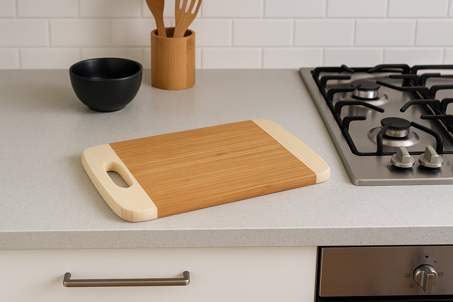 Specificatii tehnice Marca: 5Five Material: Bambus Dimensiuni produs: L.30 x l.20 x H.1,6 cm Culoare: Bej Forma: Dreptunghiulara, cu maner Scurta descriere Tocator 5Five din...
