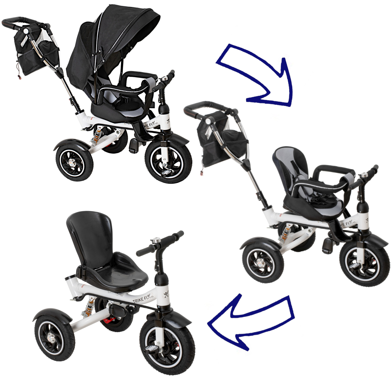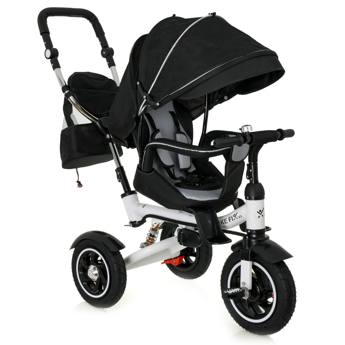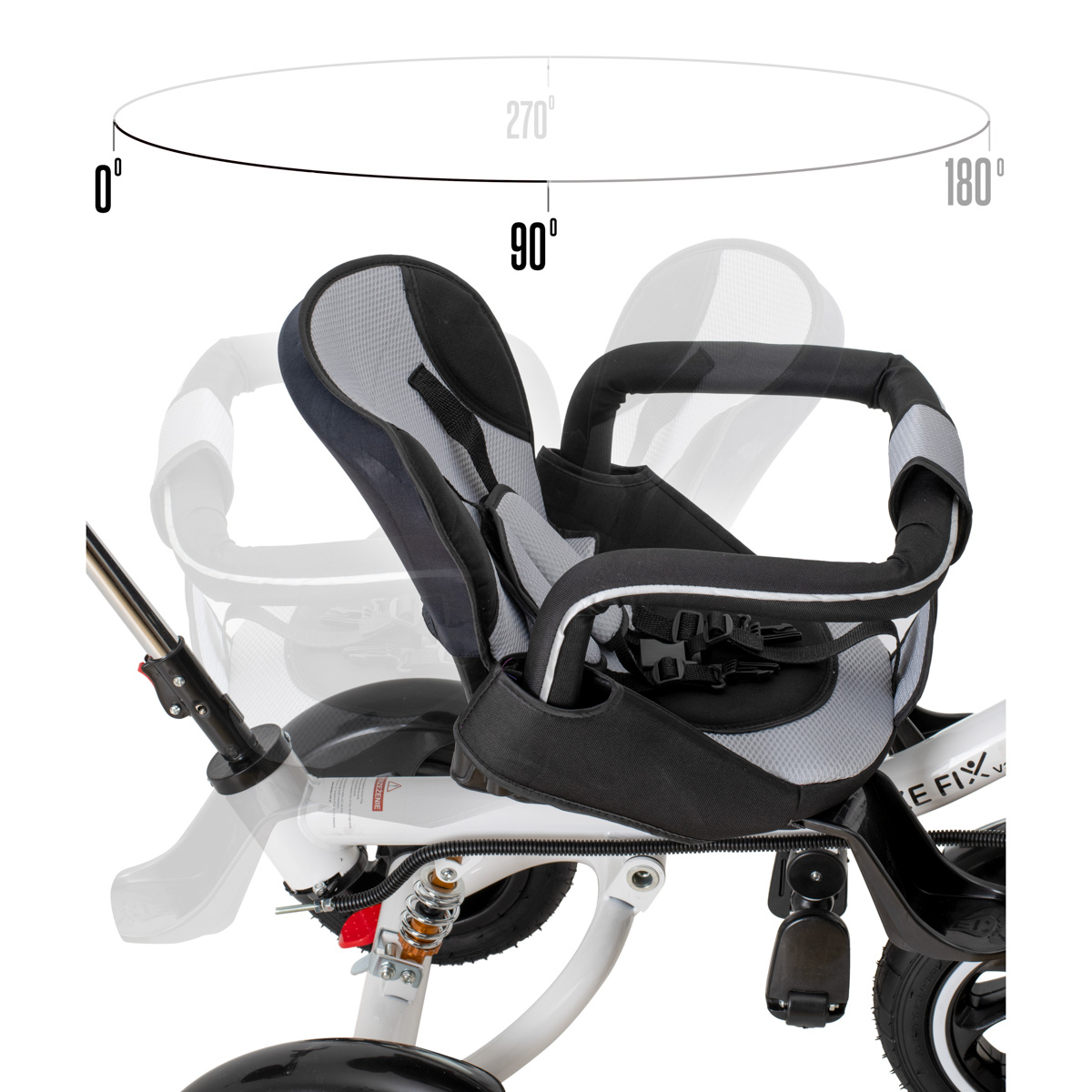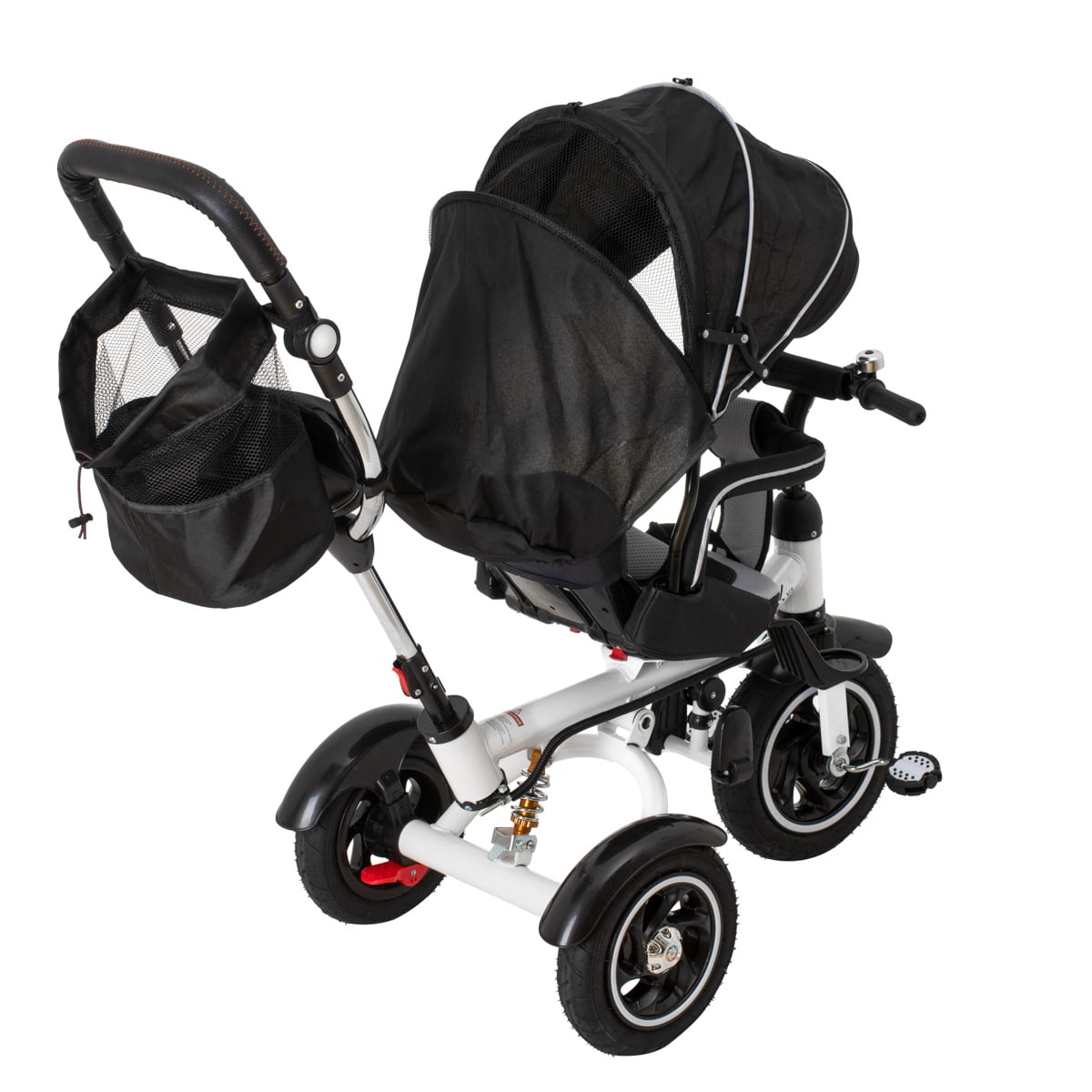Tricicleta 3in1 105x52x94 cm, sezut rotativ 360°, roti fara aer, copertina reglabila, negru