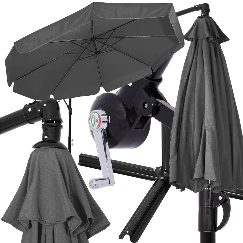 Umbrela de gradina cu brat lateral banana, cu husa, 300cm, gri