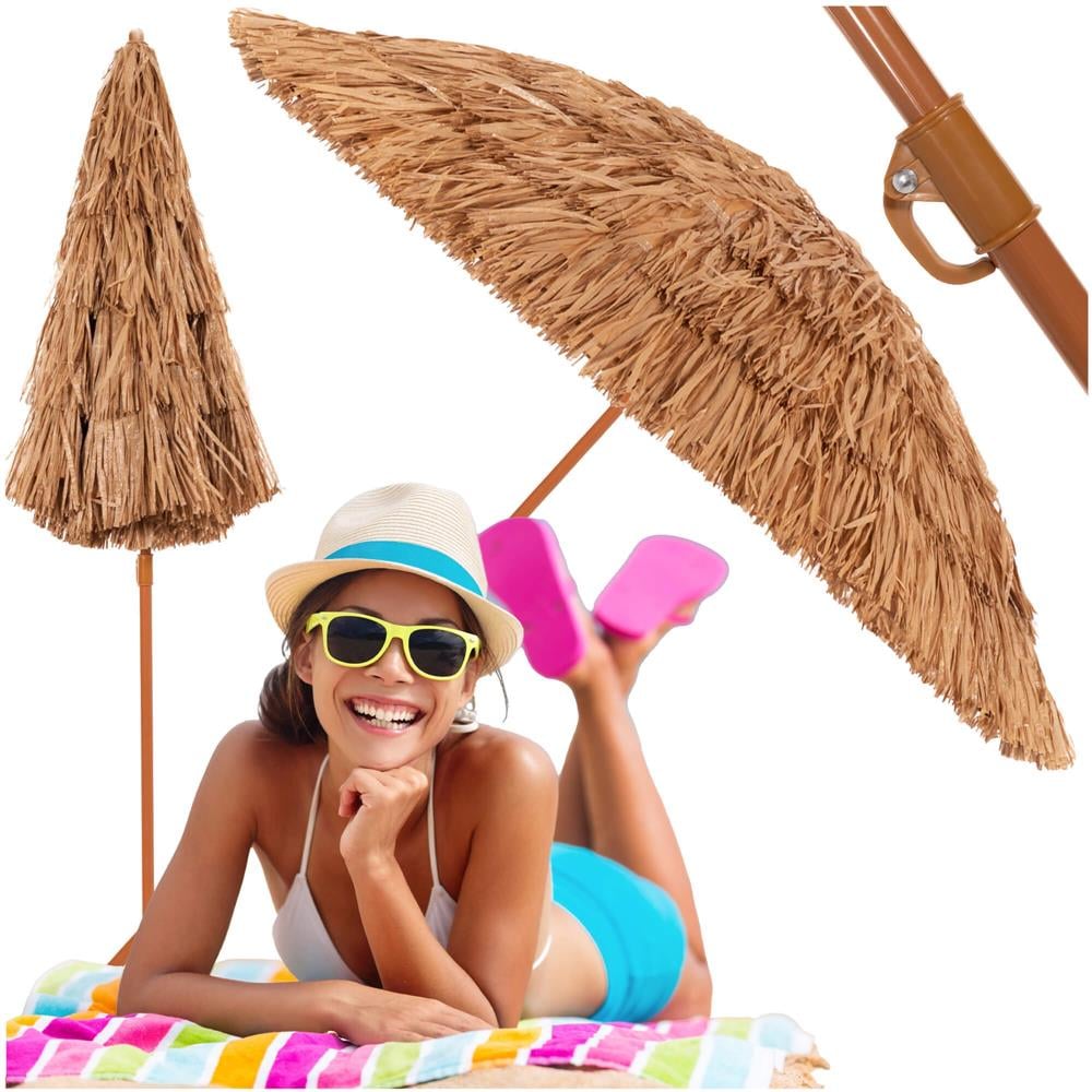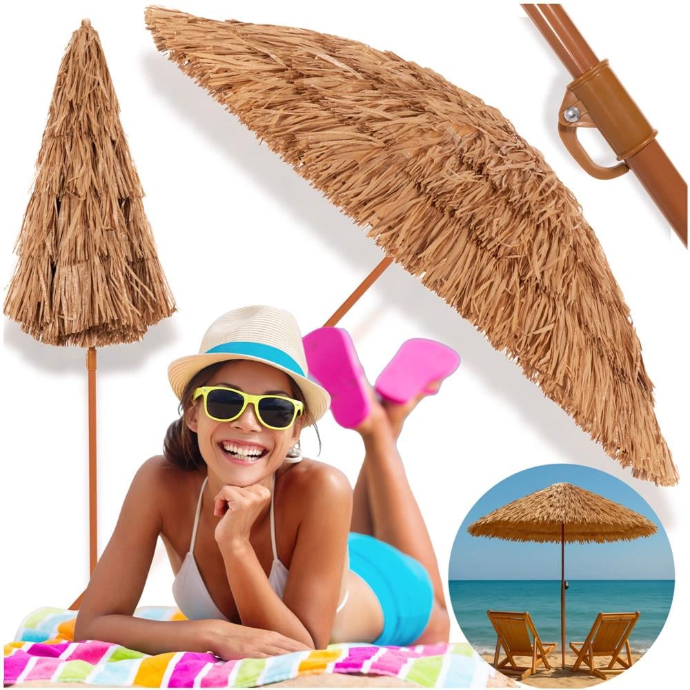 Umbrela de plaja tip hawai pliabila, cu inaltime si unghi reglabil, structura metalica, 160 cm, maro