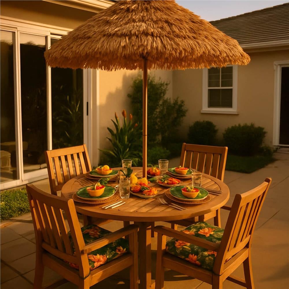 Specificatii tehnice: Tip produs: Umbrela pliabila Material parasol: Poliester 170T Material structura: Metal Material captuseala: PP Material husa: PVC Culoare: Maro, nuante de maro Diametru panza (material): 160 cm Diametru real umbrela: 135 cm Inaltime maxima: 175 cm Inaltime minima: 112 cm Diametru tije: 25 mm (jos), 20 mm (sus) Numar panouri: 8 Lungime panou: 55 cm Scurta descriere: Parasolul hawaiian pliabil de 160 cm aduce atmosfera tropicala oriunde te-ai afla. Este solutia ideala pentru plaja, balcon sau gradina, protejandu-te eficient de razele soarelui. Cu un design exotic si structura usoara din metal, se monteaza si se transporta cu usurinta. Prevazut cu sistem de inclinare si varf ascutit pentru fixare in nisip sau pamant, este companionul perfect in zilele insorite. Caracteristici principale: Structura metalica rezistenta si usoara Panza din poliester cu captuseala PP Sistem de inclinare ajustabil Varf ascutit pentru fixare directa in sol Parasol tip umbrela, usor de pliat Include husa cu maner pentru transport Potrivit pentru plaja, balcon, gradina sau camping Protectie eficienta impotriva soarelui si ploii usoare Compact si ideal pentru transport in vacante Design in stil hawaiian, decorativ si practic