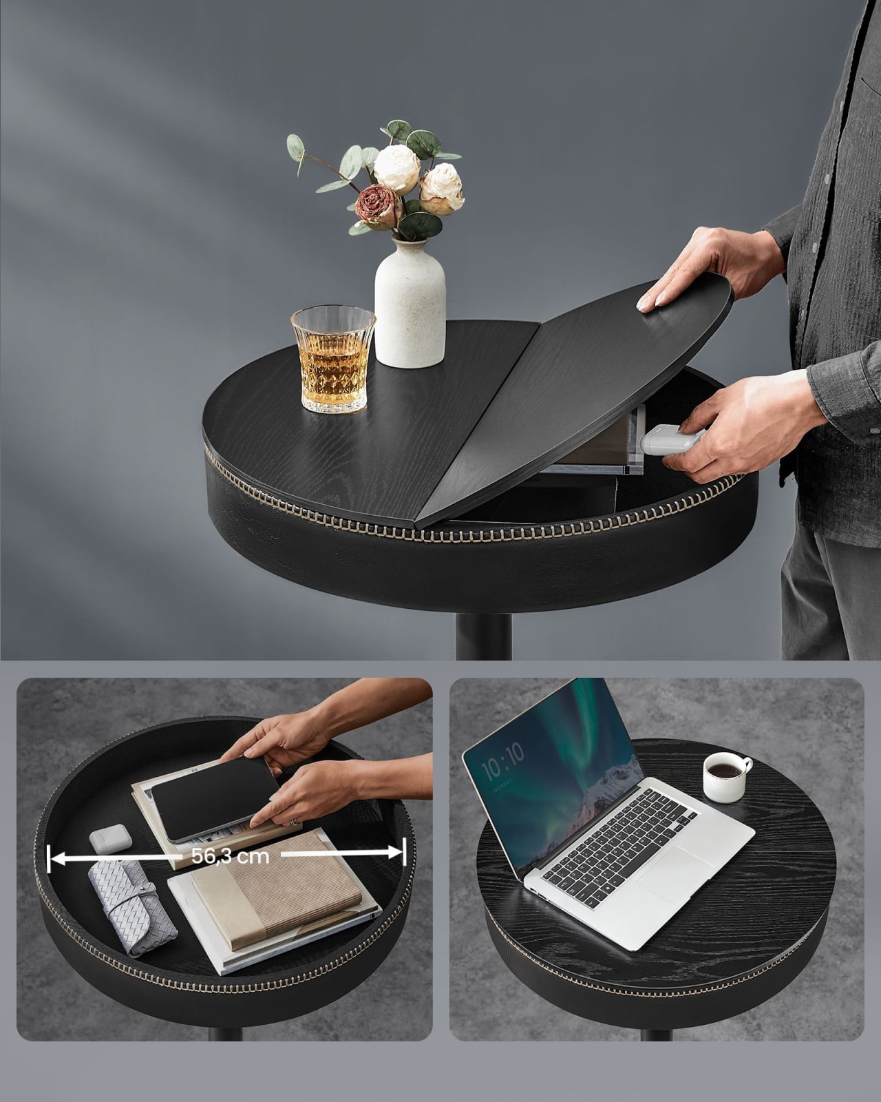 VASAGLE Masa de bar neagra, 59x59x(83-105) cm – inaltime reglabila, compartiment de depozitare
