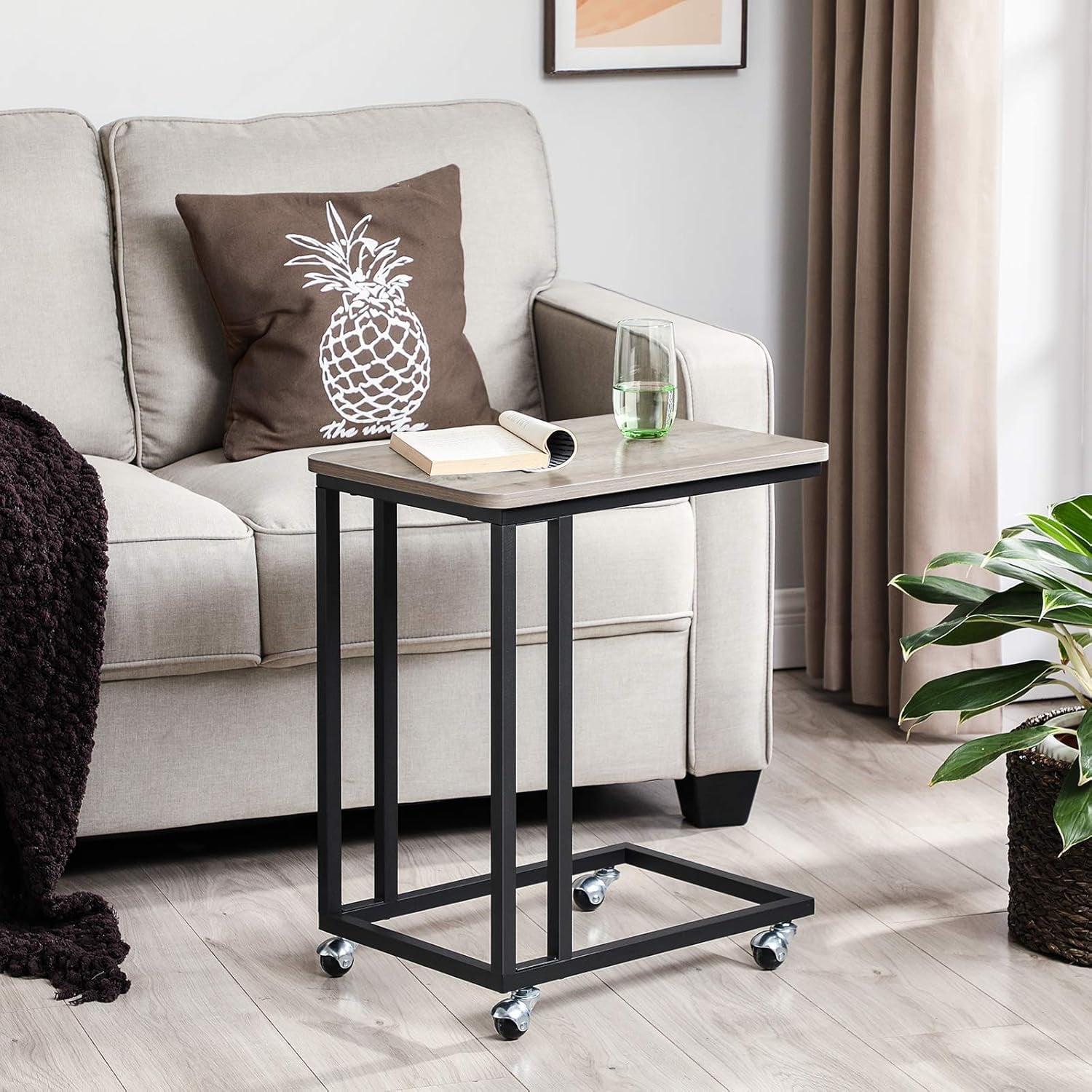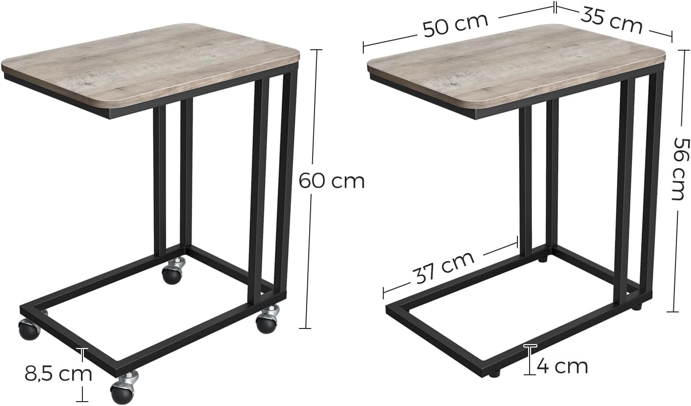 VASAGLE Masuta cafea laterala cu roti detasabile, blat PAL si cadru metalic, 35x50x60 cm, stejar gri