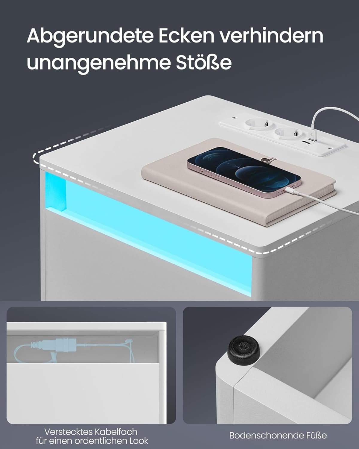 Noptiera moderna de la VASAGLE adauga functionalitate si stil dormitorului tau. Designul sau elegant si iluminarea LED reglabila creeaza o atmosfera placuta si practica. Iluminare...