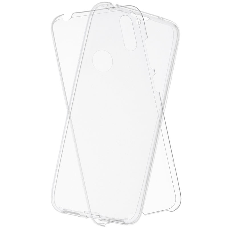 Husa compatibila Huawei Y7 (2019) Full Tpu 360 UltraSlim din silicon si plastic transparent, alcatuita din doua piese care se monteaza impreuna, formand astfel o husa fullbody ce imbraca telefonul in totalitate (ecran, spate si laterale).