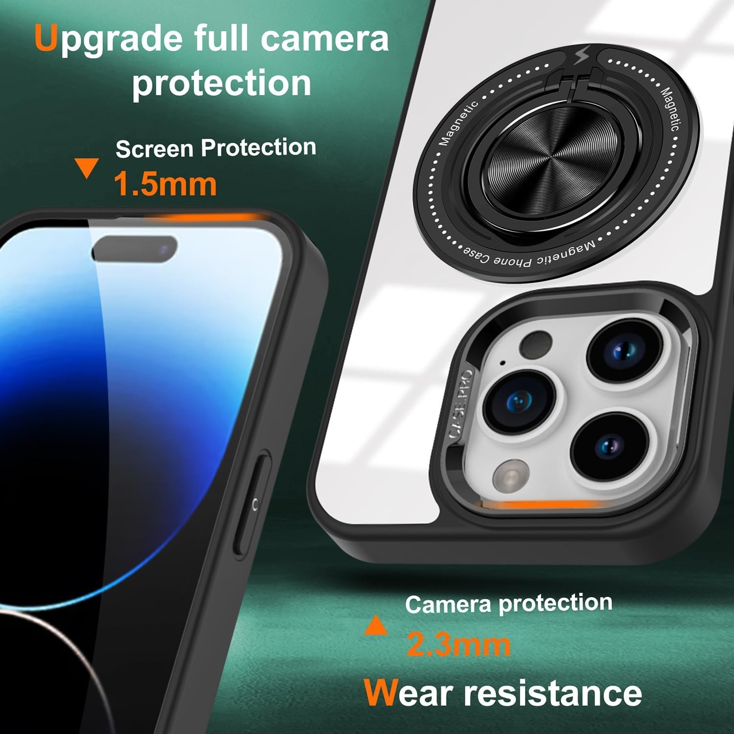 Husa de Protecție Transparentă cu Inel Magnetic pentru Apple iPhone 16 Pro - Antisoc, Antizgâriere
