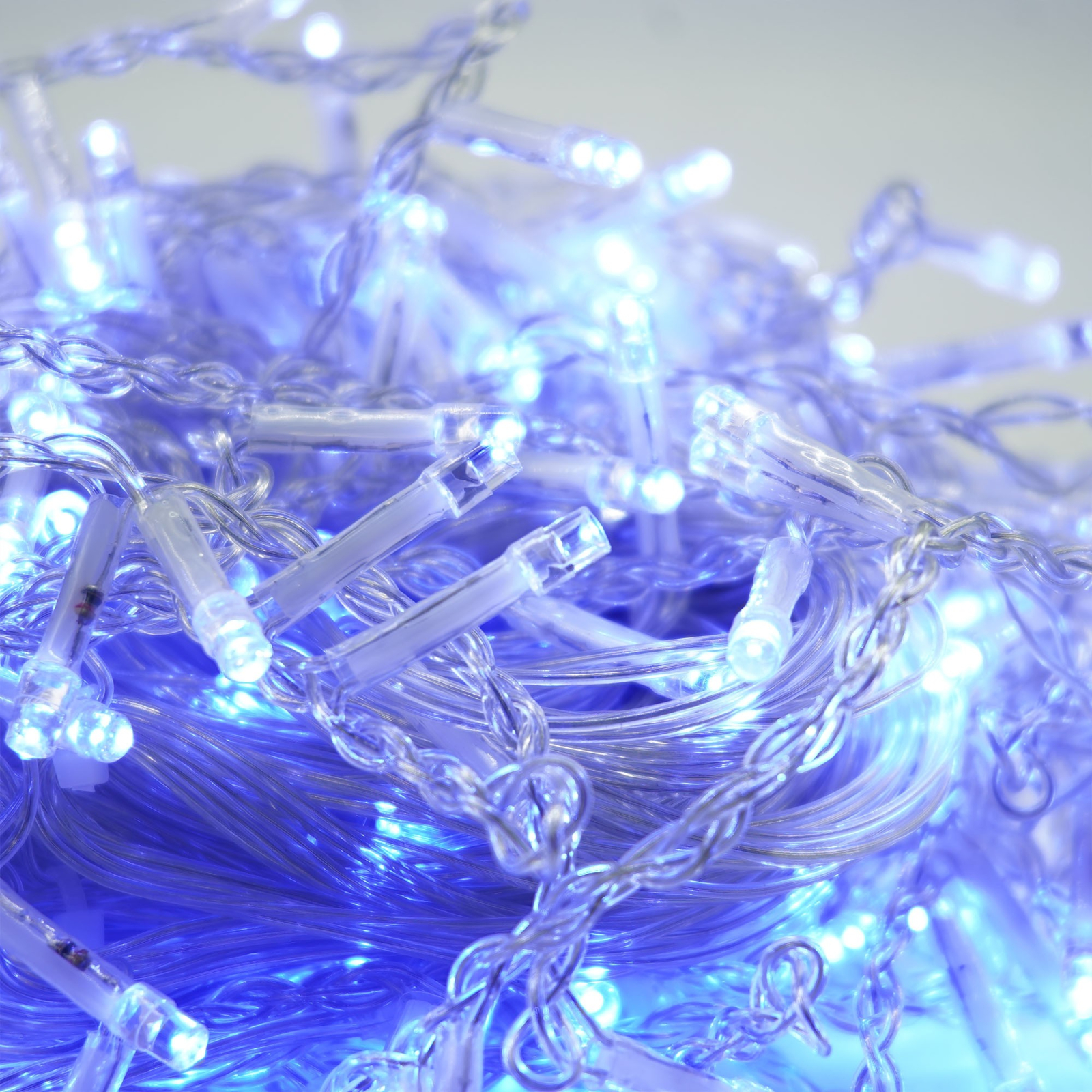 Instalatie Craciun Yoto, Tip Franjuri/Turturi, 7 m, 200 LED-uri, Prelungitor 1.5 m, 8 Jocuri de Lumini, Interconectabila, Conectare la Retea, Fir transparent, Interior/Exterior, Albastru