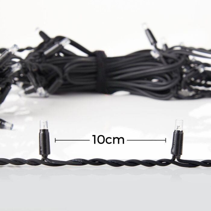 Suprafata luminoasa are un total de 40 m metri. Lungimea prelungitorului este de 6.5 m. Ofera posibilitatea de a suspenda ghirlanda astfel incat sa poata fi ascuns cablul de alimentare atunci cand este conectat la priza.