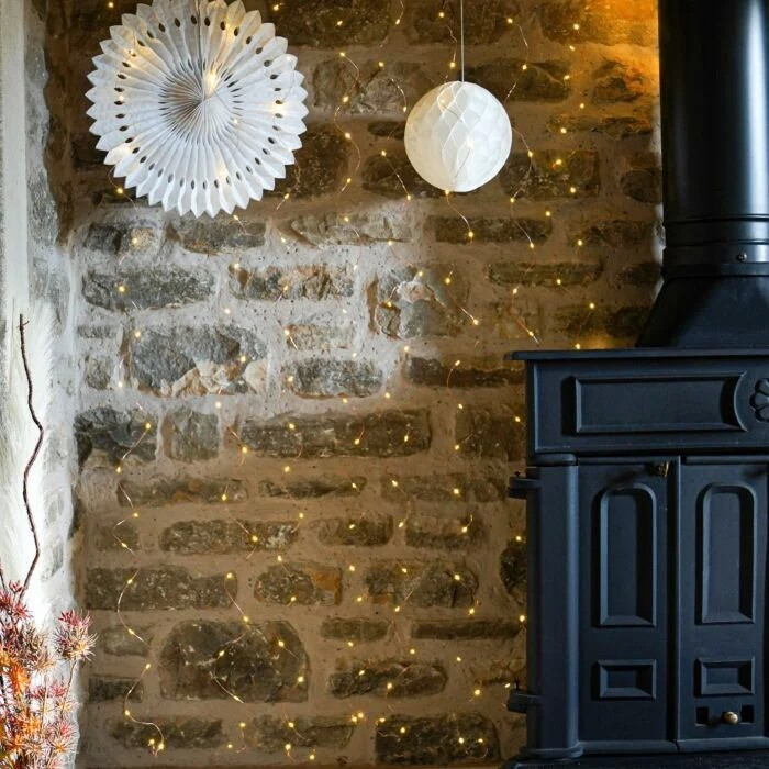 Instalatia luminoasa este de tip franjuri si are 286 LED-uri alb cald, avand o lungime de 10 m, cu fir de culoarea cuprului realizat dintr-un plastic anti-inghet, iar firele electrice sunt fabricate din cupru.