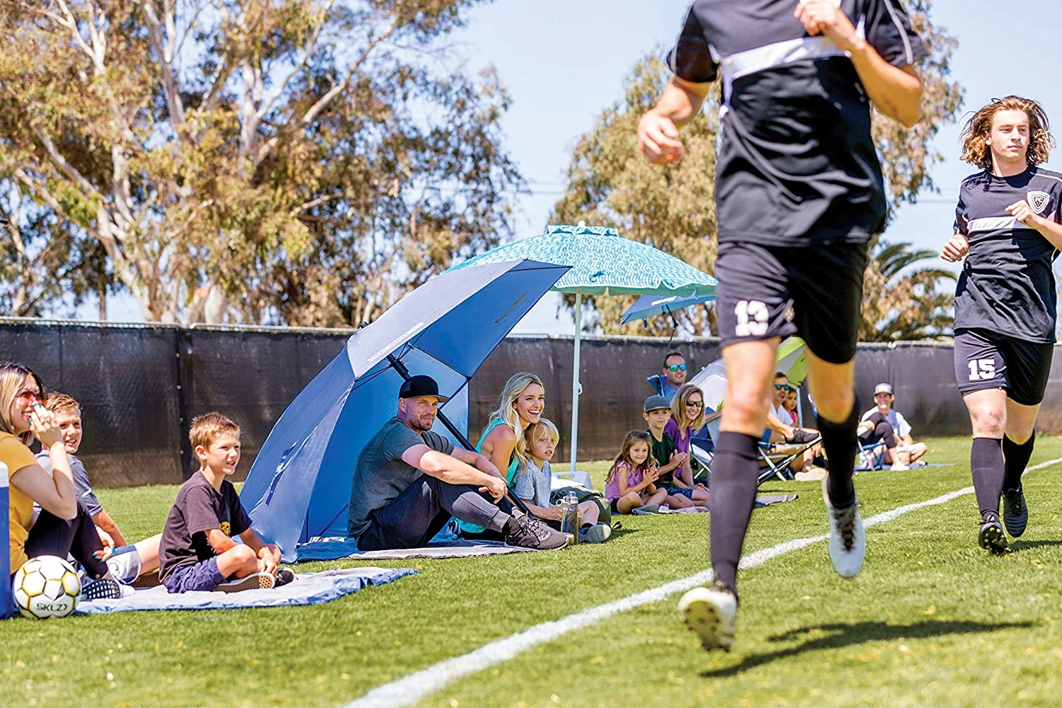 Umbrela plaja 3in1 215x205 cm, cu paravan lateral, fereastra si husa transport, material UV, albastru