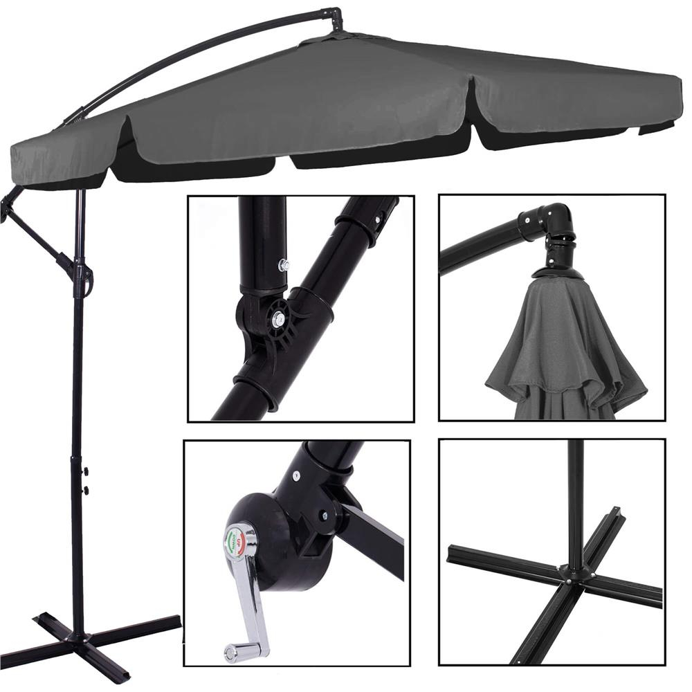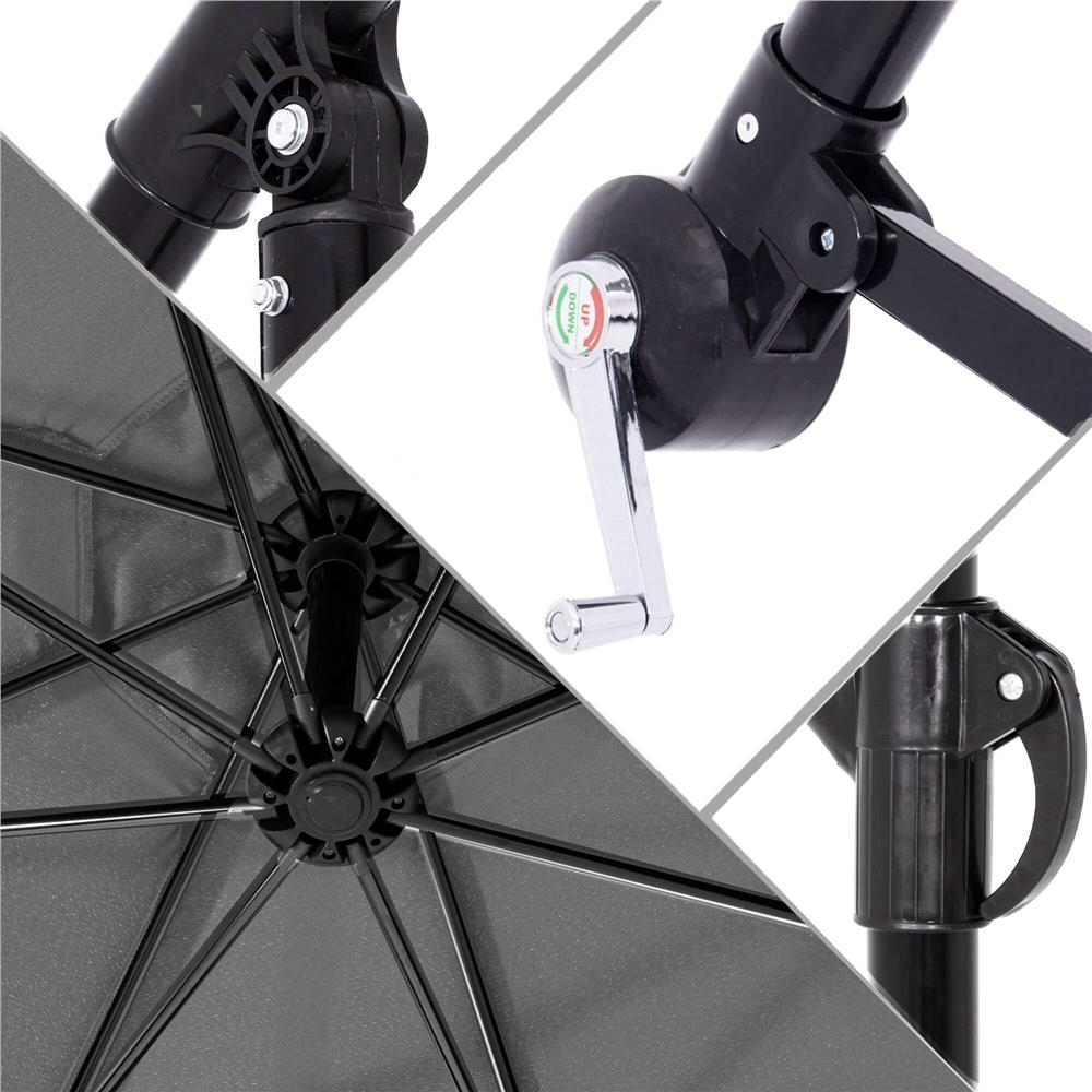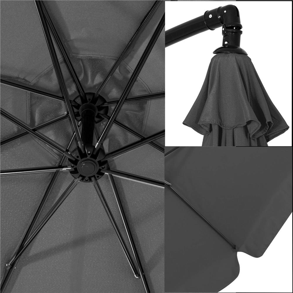 Umbrela de gradina cu brat lateral banana, cu husa, 300cm, gri