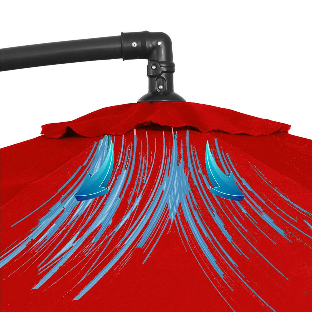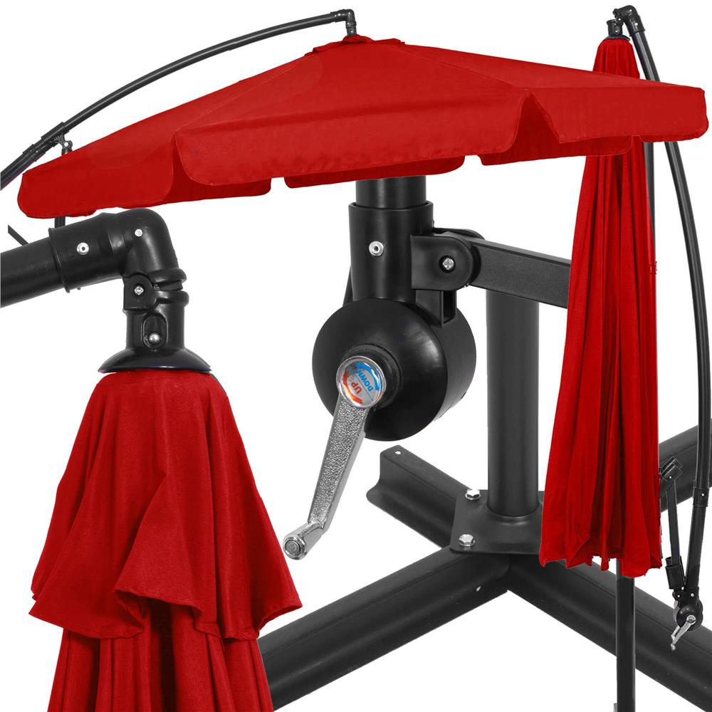 Umbrela de gradina cu brat lateral banana, cu husa, 300cm, rosu
