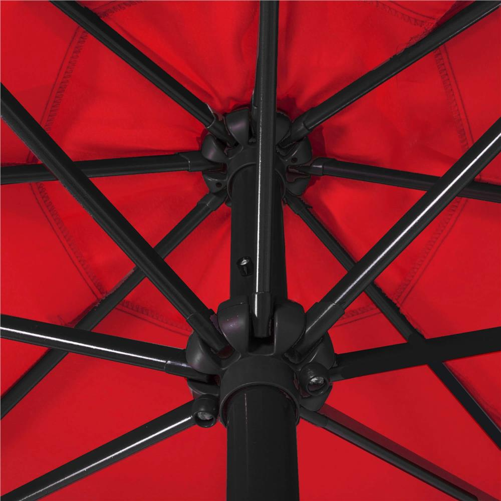PARAMETRI: Material: otel, poliester Culoare baldachin: rosu Constructie: 8 panouri Culoarea cadrului: negru, vopsit cu pulbere Husa inclusa Mecanism: manivela Dimensiuni: Lungimea umbrelei: 290 cm...