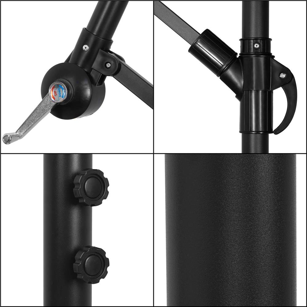 PARAMETRI: Material: otel, poliester Culoare baldachin: rosu Constructie: 8 panouri Culoarea cadrului: negru, vopsit cu pulbere Husa inclusa Mecanism: manivela Dimensiuni: Lungimea umbrelei: 290 cm Latimea materialului umbrelei (inclusiv volane): 350 cm Inaltime totala (cu baldachinul desfasurat plat): 262 cm Inaltime cu baldachinul pliat si bratul in jos: 275 cm Inaltime pana la structura de sub baldachin: 218 cm Lungime suport de baza: 100 cm Diametru orificiu de ventilatie: 33 cm Diametrul cantonului deasupra orificiului de ventilatie: aprox. 42 cm Inaltime picior de baza: 4 cm Latimea piciorului de baza: 10 cm Lungimea unui brat al bazei: 48 cm Lungimea bratului masurata in arc: aprox. 200 cm Lungimea catargului vertical: aprox Latimea unui panou la marginea baldachinului: 110 cm Lungime volan: aproximativ 25 cm Latimea volanului: 107 cm (masurata la jumatatea volanului) Latimea baldachinului inchis: aprox Lungime baldachin inchis: 160 cm Lungime manivela: 12 cm Lungimea manerului la catarg: 12 cm Diametru tub catarg: 48 mm Diametrul tubului bratului: 42 mm Profil tub baldachin: 14x18 mm Diametrul tubului care incoroneaza copertina (sub orificiul de ventilatie): 30 mm Lungimea tubului/structurii sub baldachin: 28 cm Dimensiuni coperta: 167 x 47 x 47 cm Diametrul mare al umbrelei va va permite sa umbriti si sa protejati o suprafata mare a terasei, balconului sau gradinii de soare sau de ploaia deranjanta, oferindu-va posibilitatea de a face gratare in voie, de a va juca cu copiii, de a gazdui un numar mare de persoane la o petrecere sau de a acoperi o piscina mare sau un loc de joaca. Umbrela este realizata din cele mai bune materiale. Cadrul din otel acoperit cu pulbere va va permite sa va bucurati cu succes de utilizare in multe sezoane de vara. Husa impermeabila a copertinei va va permite sa va adapostiti nu numai de soarele arzator, ci si de ploile neasteptate, care nu va vor mai intrerupe relaxarea linistita in gradina. Mecanism manivela eficient si solid pentru desfasurare si pliere in doar cateva secunde Husa practica si usoara - va proteja copertina atunci cand nu folositi umbrela Pentru a creste stabilitatea si siguranta, de exemplu, in cazul unor rafale de vant neasteptate, umbrela este echipata cu o baza larga, a carei deschidere este de pana la 100 cm. In plus, fiecare dintre picioarele sale este echipat cu gauri, datorita carora puteti folosi ancore sau suruburi speciale dedicate unei anumite suprafete pentru a atasa permanent baza intr-un loc convenabil. Forma elementelor de baza va permite, de asemenea, sa adaugati greutate suplimentara daca o considerati o solutie mai potrivita. IMPORTANT! Nu uitati sa nu lasati umbrela deschisa in caz de vant puternic.