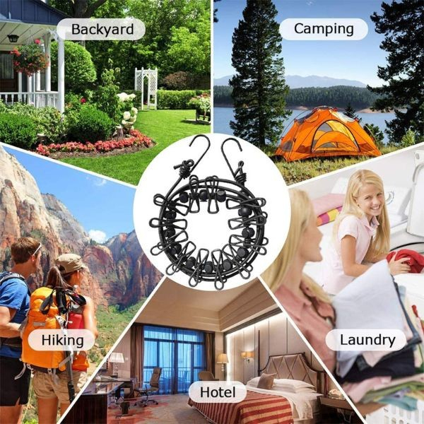 Acest uscator de haine de calatorie si in aer liber poate fi atasat oriunde, inclusiv camere de hotel, bai, curti, spalatorii, rulote, barci, balcoane sau chiar copaci. Ofera flexibilitate si comoditate pentru nevoile dvs. de spalat rufe in timp ce sunteti in deplasare.