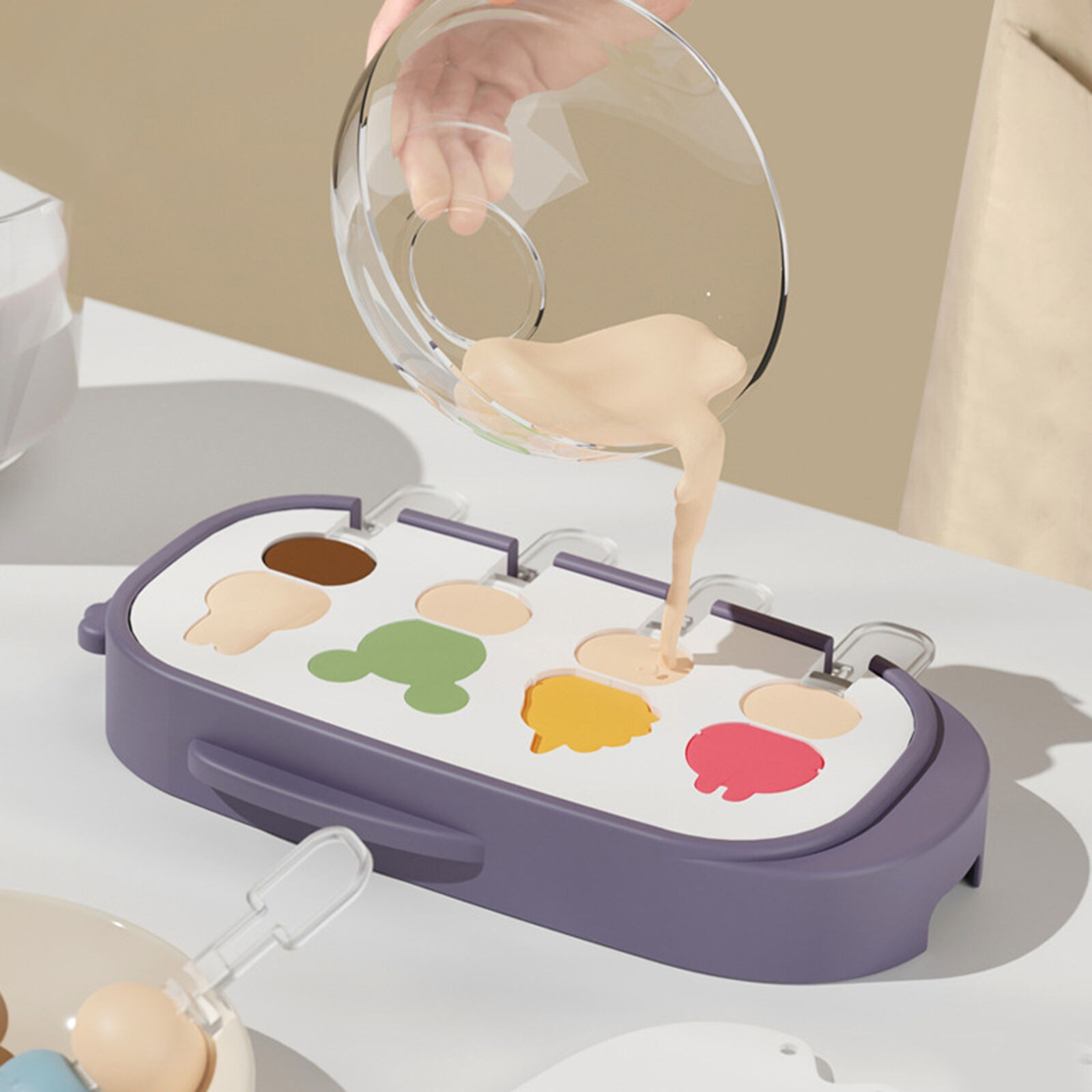 Forma pentru inghetata , 4 compartimente, forme cu animalute, materialsilicon si ABS, 21 x 12.8 x 3cm, mov