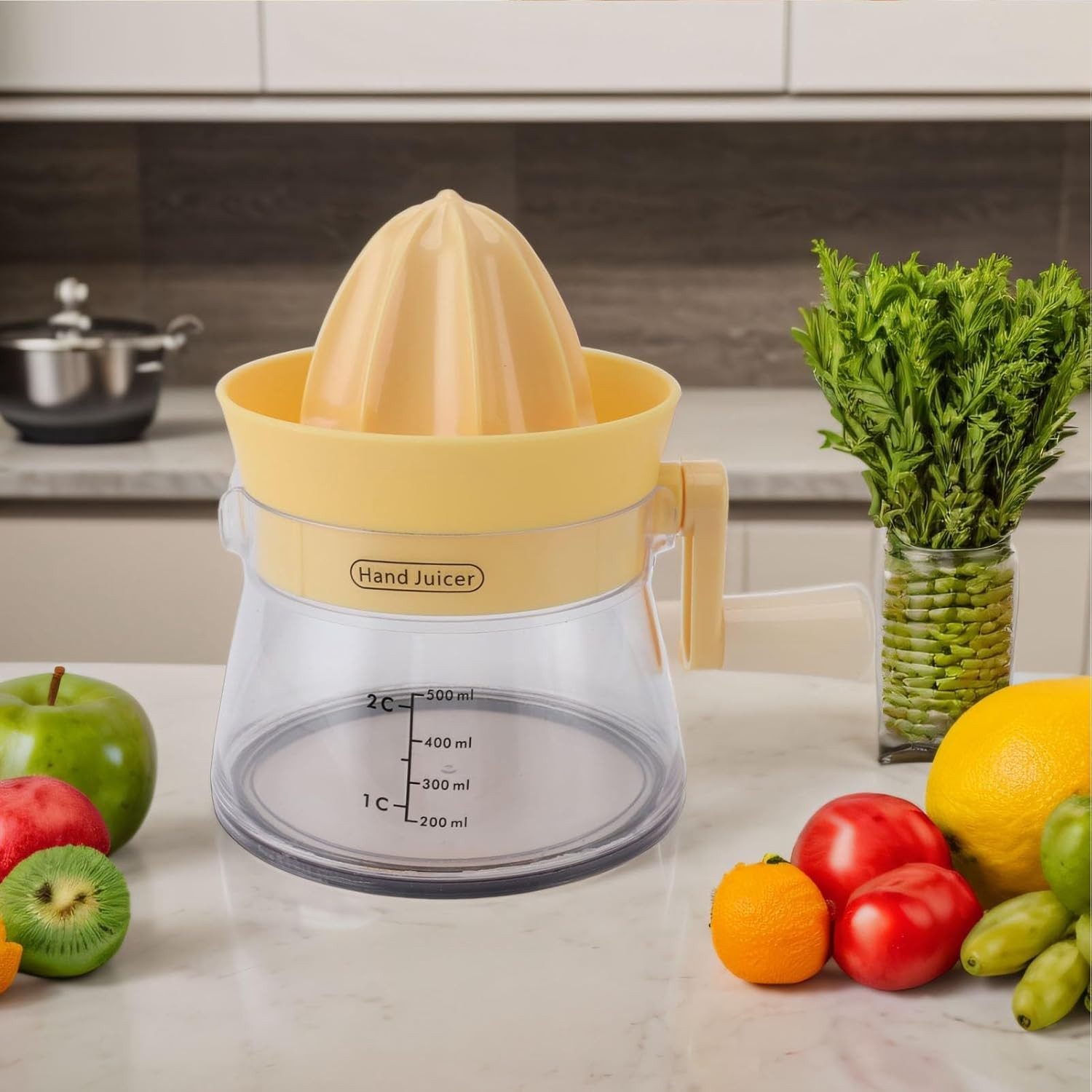 Gata cu sucurile din comerț pline de conservanți! Alegeți storcătorul de citrice manual și savurați prospețimea într-un mod simplu și eficient. Adăugați o notă de revitalizare în fiecare zi și experimentați gustul autentic al fructelor!