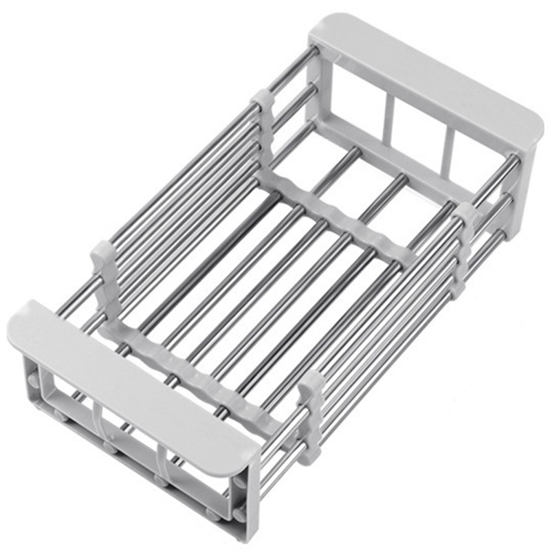 Suport Scurgere Extensibil pentru Bucatarie, , Uscator Vase din Otel Inoxidabil, Suport Tacamuri si Pahare, Suport pentru Fructe si Legume, 24.5 x 16.5 x 9.5 cm