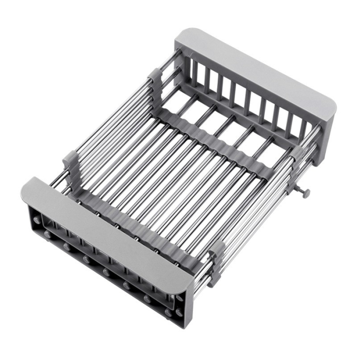 Suport Scurgere Extensibil pentru Bucatarie, , Uscator Vase din Otel Inoxidabil, Suport Tacamuri si Pahare, Suport pentru Fructe si Legume, 29 x 22 x 9.5 cm