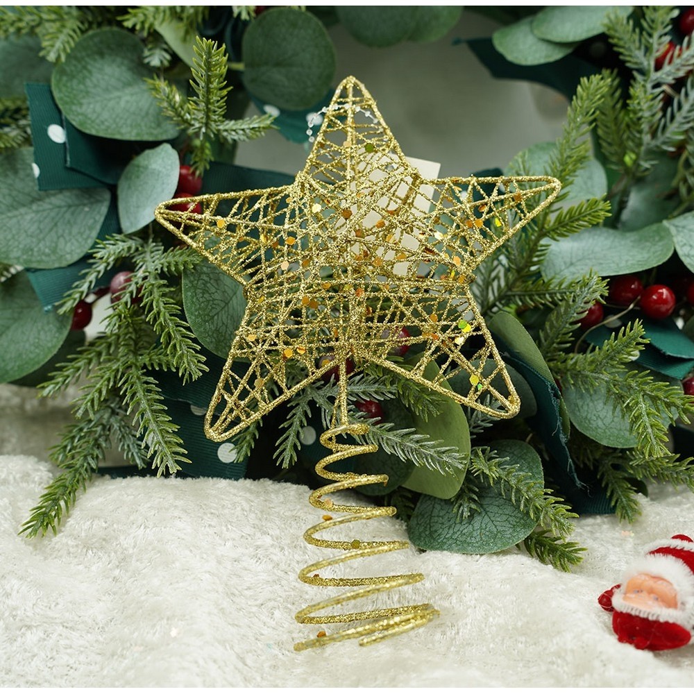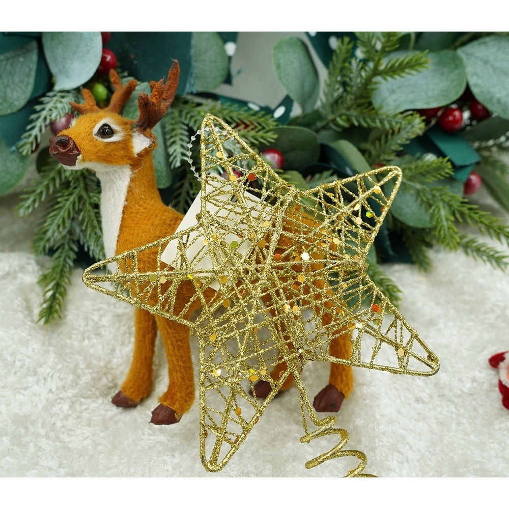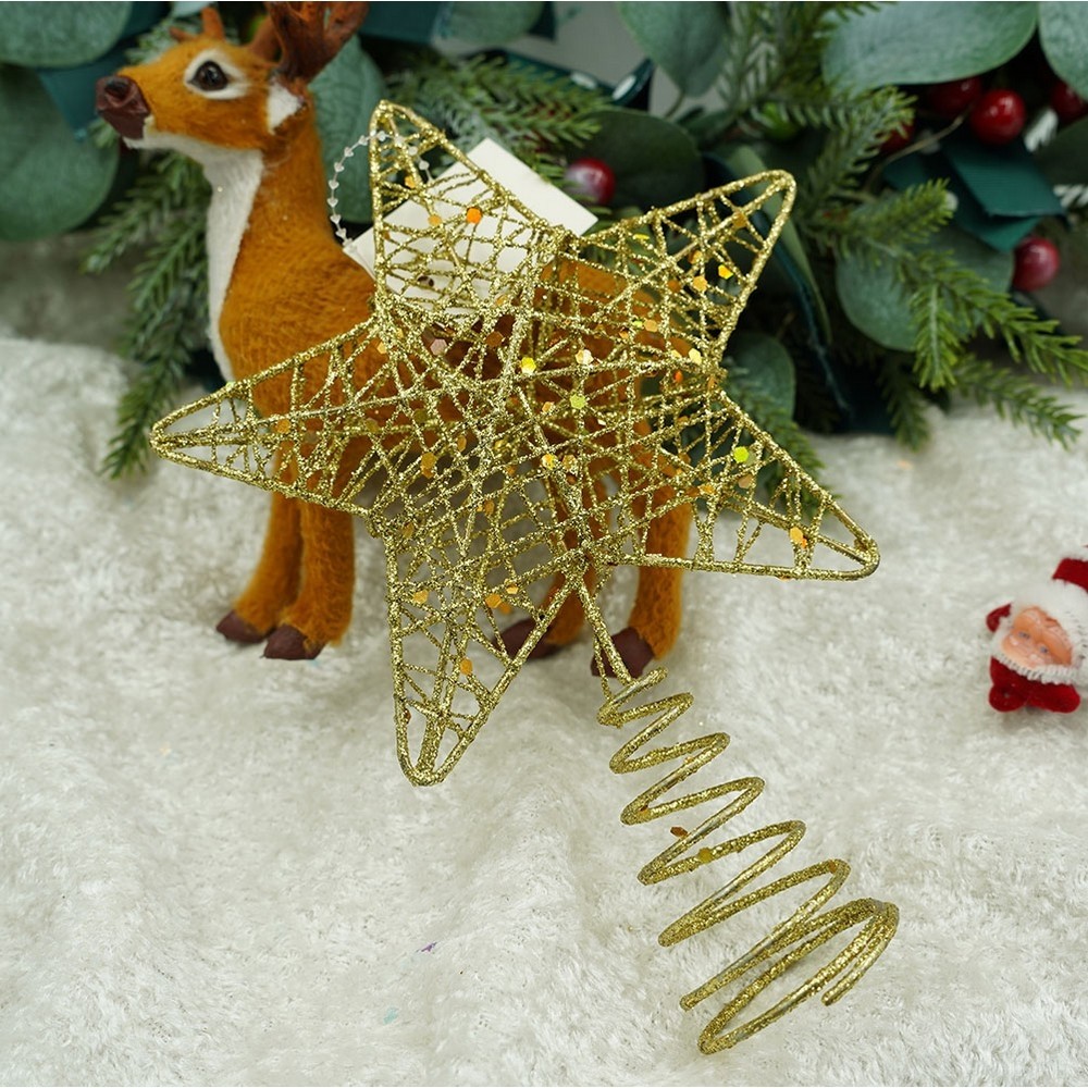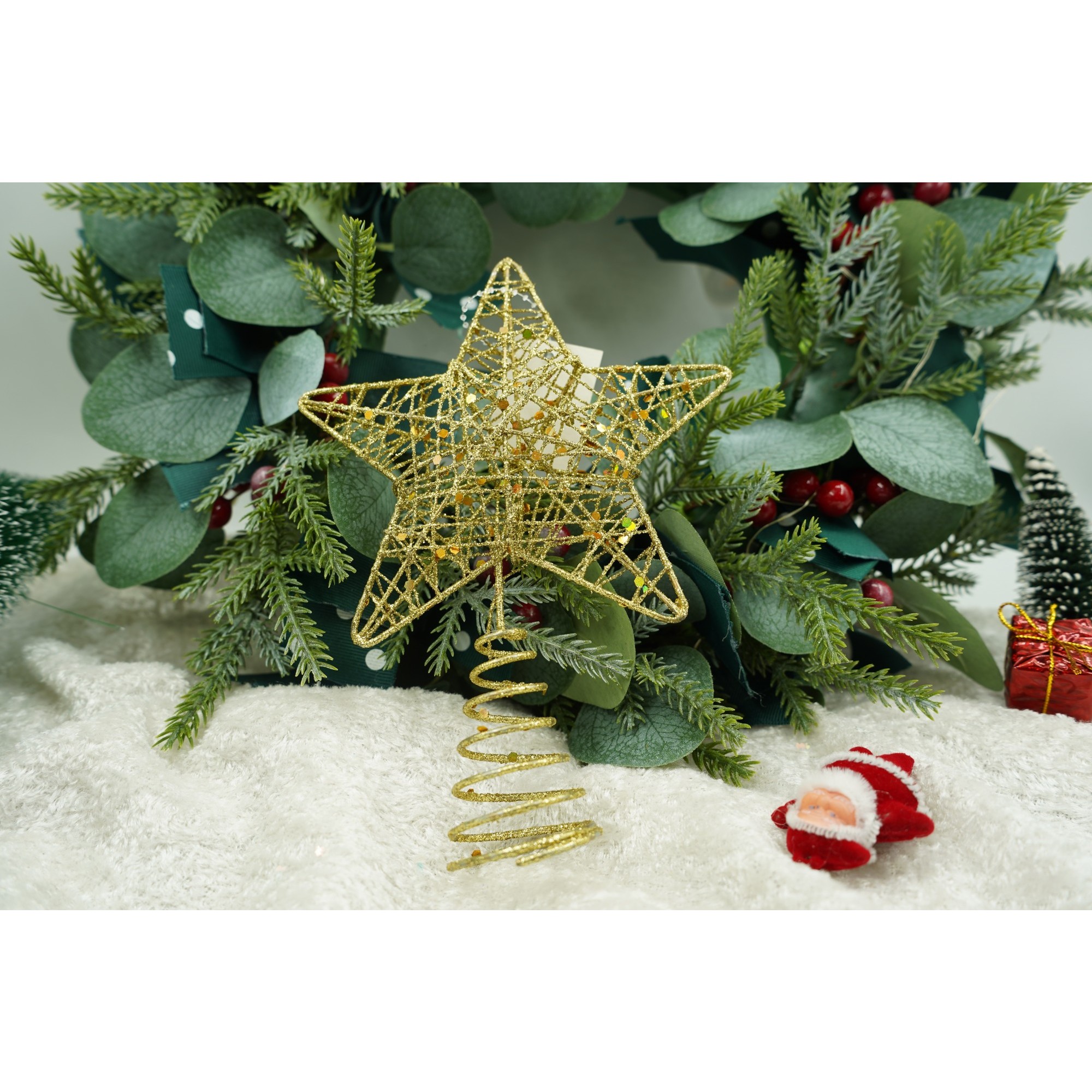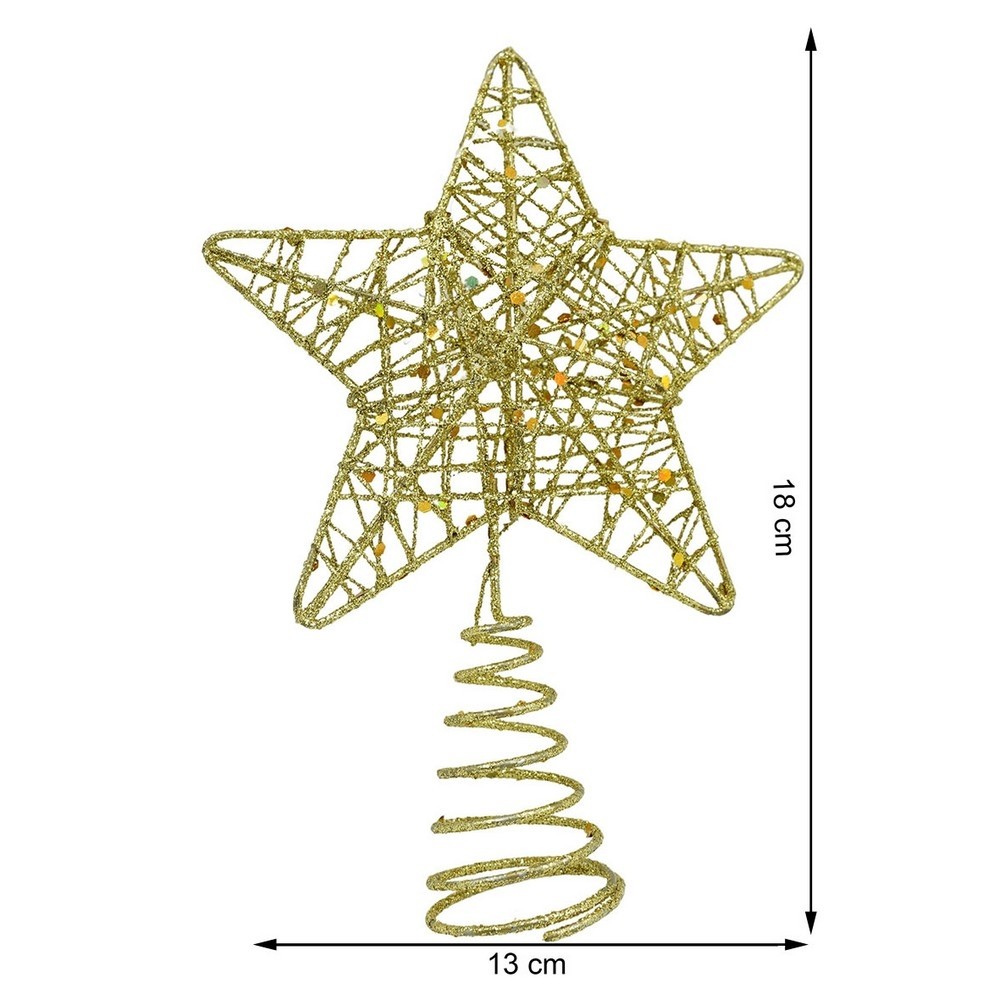 Varf decorativ de brad, Auriu, in forma de Stea, design cu paiete, din Plastic/Metal, 13 cm x 18 cm, diametru 4 cm, Interior/Exterior,