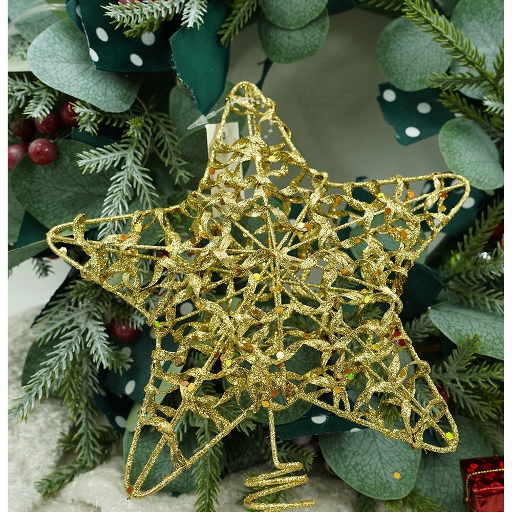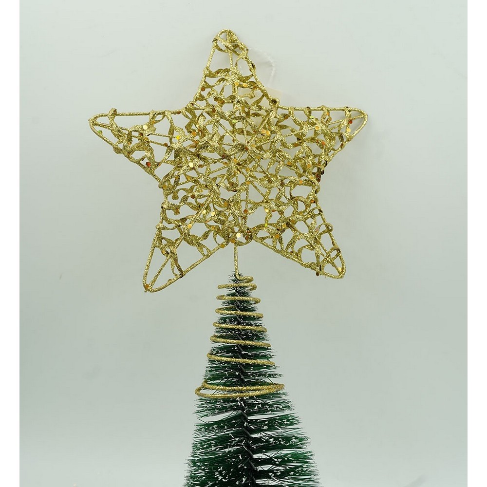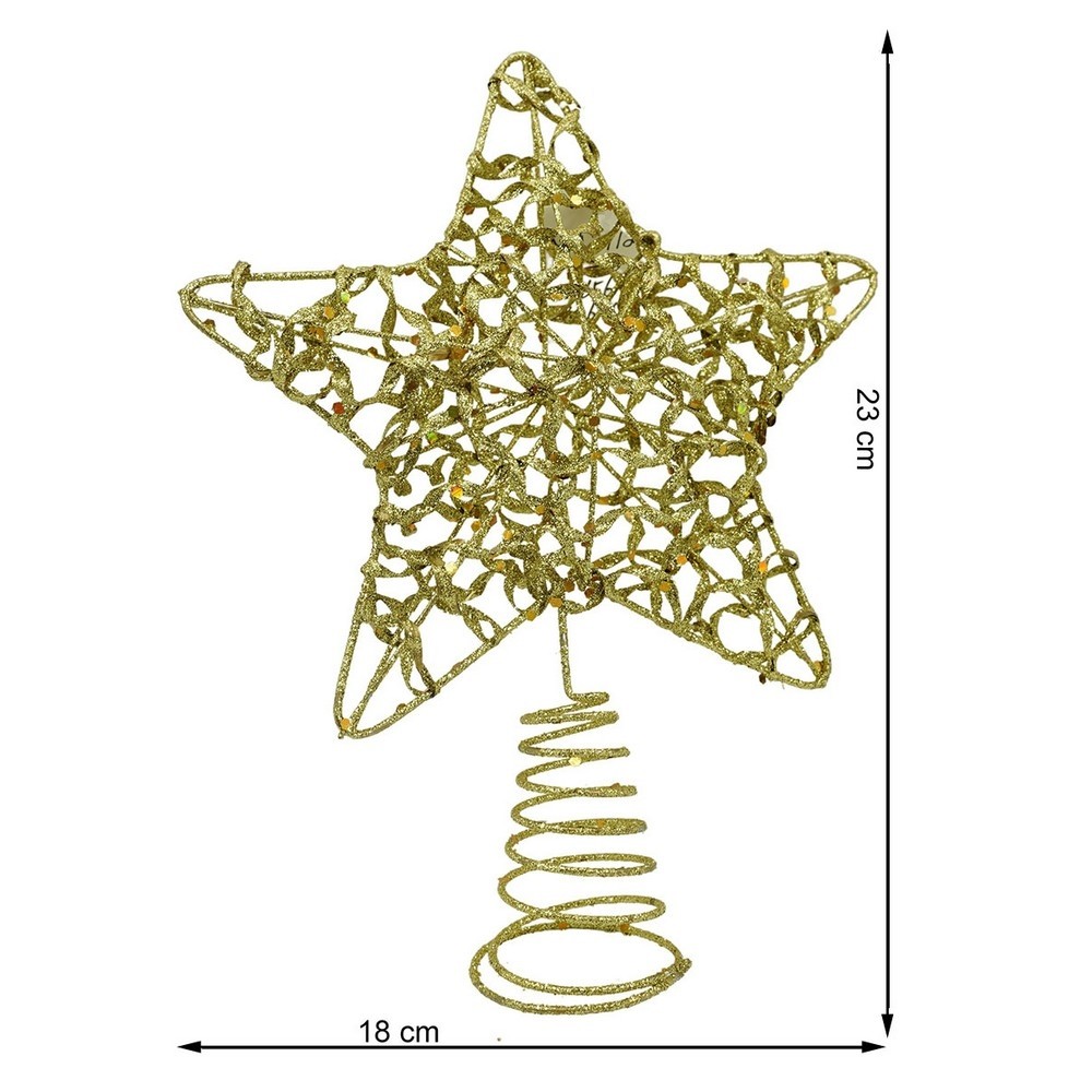 Varf decorativ de brad, Auriu, in forma de Stea, design cu paiete, din Plastic/Metal, 18 cm x 23 cm, Interior/Exterior,