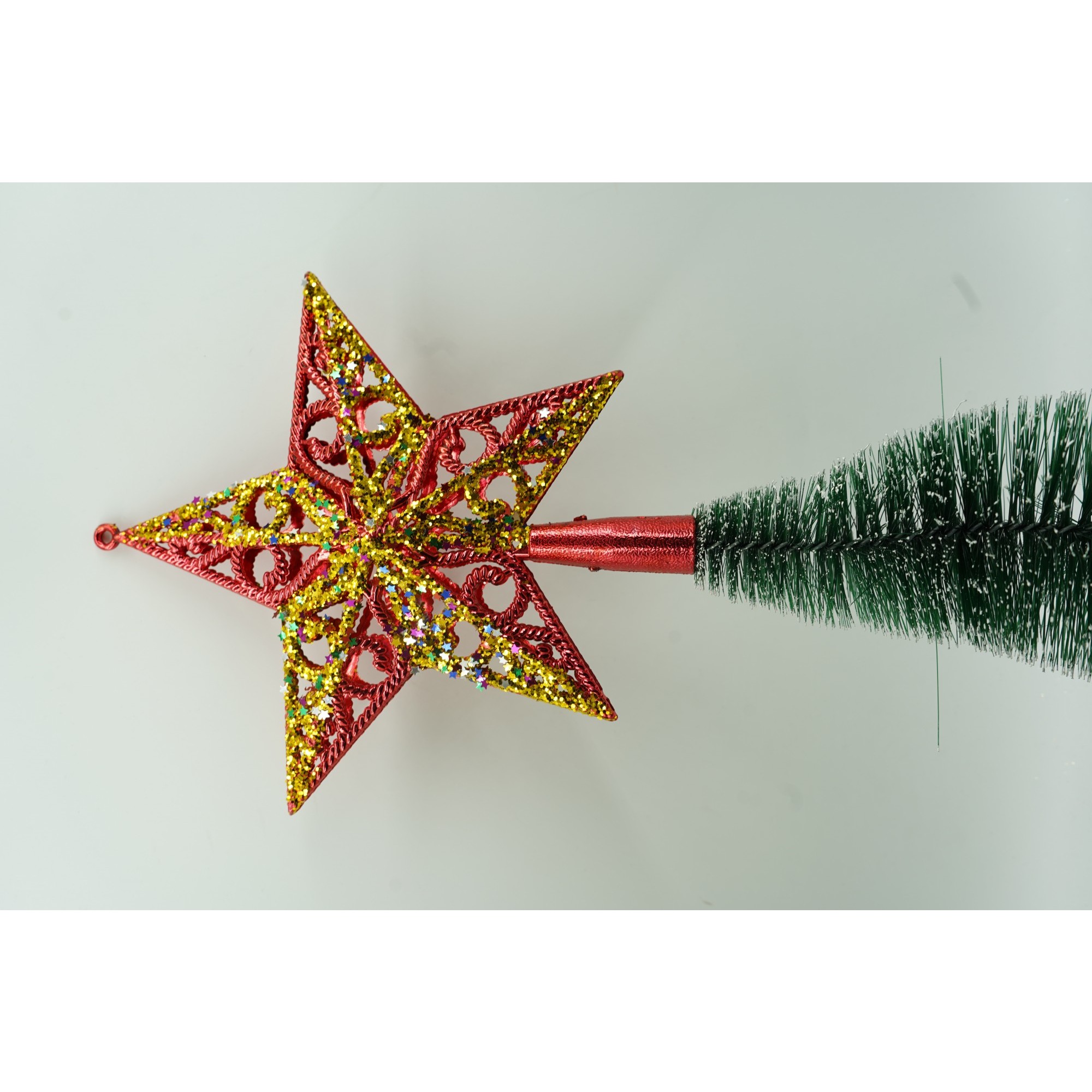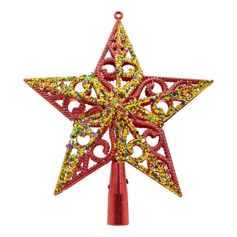 Varf decorativ de brad, Rosu/ Auriu, in forma de Stea, design spiralat, din Plastic, 19 cm x 21 cm, Interior/Exterior,
