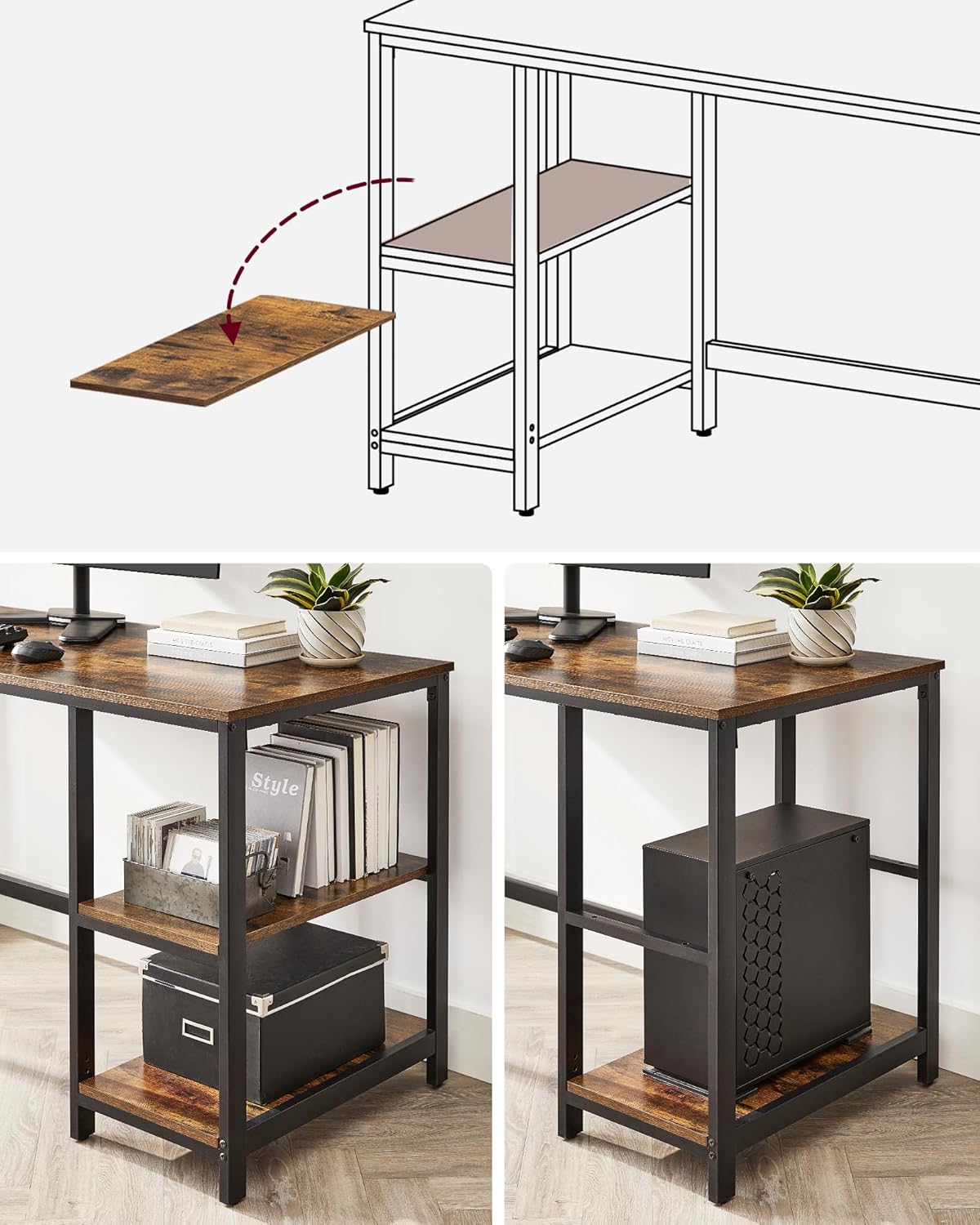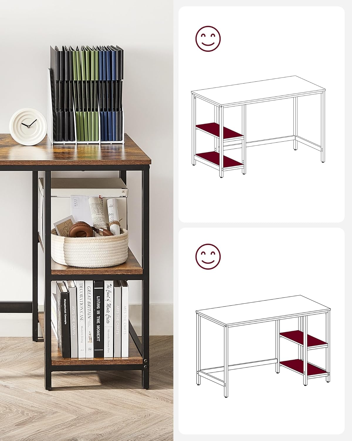 VASAGLE Birou cu 2 rafturi stanga sau dreapta, stil industrial, 60x140x76 cm, maro rustic