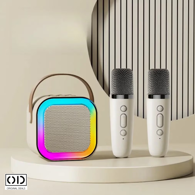 Boxa Portabila pentru Karaoke, cu 2 Microfoane Incluse, Joc de Lumini RGB, Incarcare USB C si Redare 3 - 4 Ore, Calitate Premium, Design Profesional | Original Deals